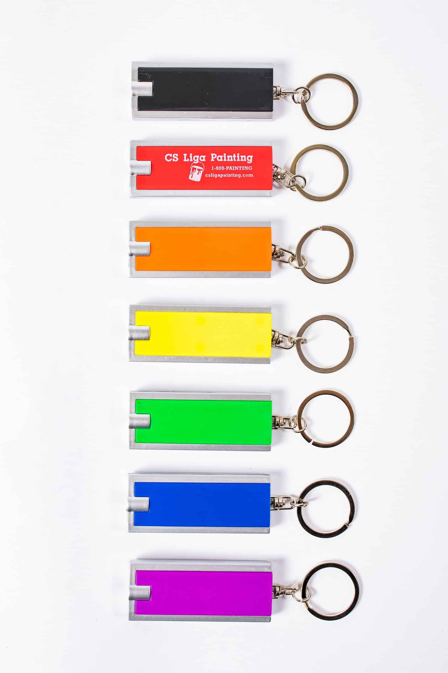 The super bright LED Key Chain is available in a variety of colors. Gently squeeze to turn the light on and release to turn the light off. It is a great promotional giveaway for college students who may need a little extra light on campus. Complies with Prop 65. 2.5″ W x 1″ H